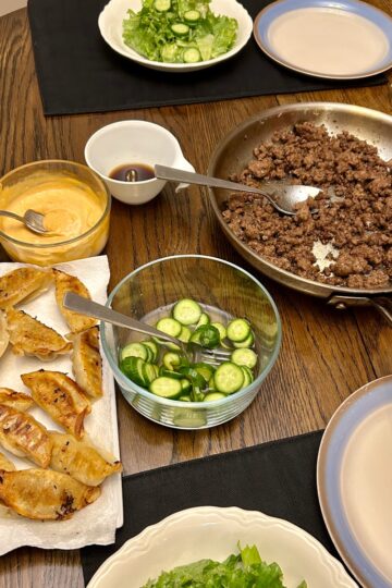 Grateful to come home to my family and dogs and good food at the end of a long workday.